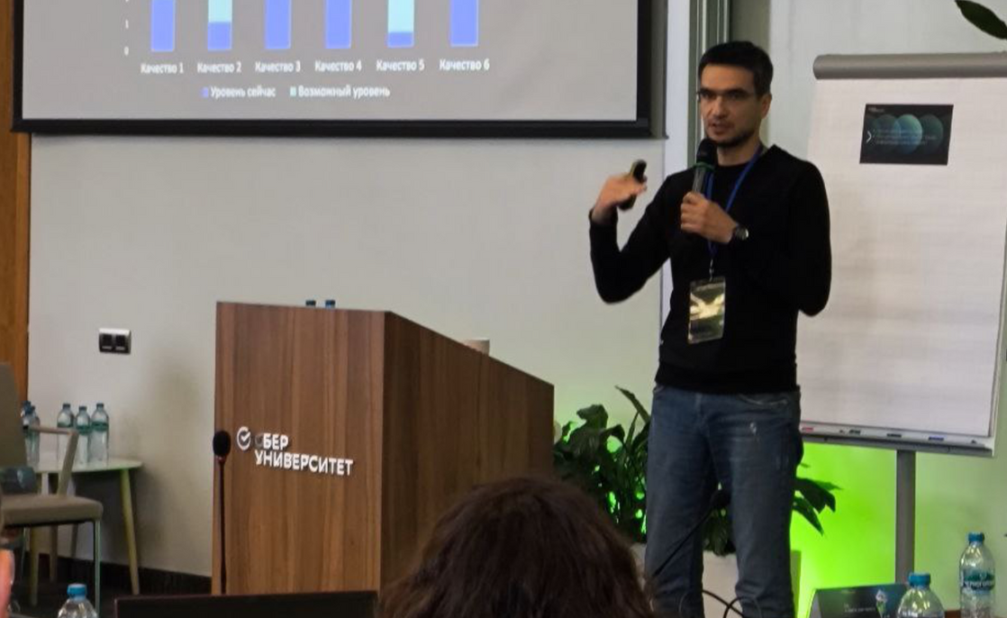 After lunch, business clients presented three business cases from Sber. Alexey Sukhanov posed the question: are there "hidden talents" and how can they be uncovered? Petr Dubinin focused on how to create an AI leader without losing them. Andrey Balles discussed "poisoned data" and priority data technologies for a human-centric organization.